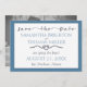 Meddela ditt bröllop-datum med den här enkla men klassiska elegantens nautiska tema. På framsidan står "Spara datumet" och den har en längd på rep, som är löst fastsatt och bildar ett hjärta. Utsidan av kant har ett tunt, dubbla-line gräns som accent. Anpassa den återstående texten med hjälp av de enkla mallarna. Text och design inslag trycks i ett mjukt, kol-grått-blått. Ställe ditt eget foto på baksidan genom att byta ut exempelfotot mot ett eget foto på förlovningen. Anpassa färg längst fram i gräns genom att markera alternativet Anpassa det och välja ett eget färg i väljaren Utskrivet Färg i bakgrunden. Du kan också redigera färg för att matcha bröllop-temat.