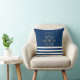 Nautisk,Guld Boat Wheel, marinblå Rand Kudde
