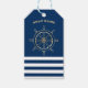 Nautisk,Guld Boat Wheel, marinblå Rand Presentetikett