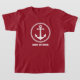 Boys T-Shirt med din personlig namn, båt namn eller annan text och en anpassningsbar nautisk sjöankare i vitt med rött. Gör en underbar gåva till tillfälle.