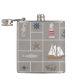 Nautisk tematisk illustration med sjöhäst, segelbåt, segelhjul, ankare, fyr, fisk, årskal, stjärnfisk och kompass dekoration i rektanglar på grym sandbakgrund