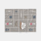 Nautisk tematisk illustration med sjöhäst, segelbåt, segelhjul, ankare, fyr, fisk, årskal, stjärnfisk och kompass dekoration i rektanglar på grym sandbakgrund