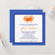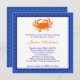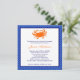 Modern och ljus inbjudningskort för möhippan. Underbar för en havtemahändelse eller ett strandsidoparty. Presenterar en krabba i orange med en marinblå polka dotsram. Luftig och nautisk look. Tillfoga ditt egna uttrycka.