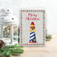 Denna Nautiska juldesign har en fyr med en ram av nautisk julankare, bojar, stjärnfisk och snäckor. Bakgrunden är avverkat drivträ, med akvariet gräns. Anpassa insidan med din egen familj namn och ändra budskapet om du vill.