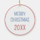 Denna söta kustinspirerade helgdag keramiska prydnadsföremål har en nautisk blå och vit livskonserverare som är dekorerad med en röd båge och ljus vid jul. Anpassa med ditt val av namn och speciell helgdag på framsidan och baksidan.