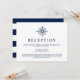 Nautiskt tema mottagningsinbjudan kort med en vintage stil kompassros och en marinblå och vit randig bakgrund på baksidan.
