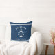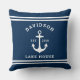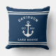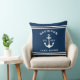 En nautisk marinblå kastkudde med en djärv vit ankar-design med anpassningsbart familjenamn, etableringsår och Sjöhus-text. Marina och vita ränder lägger till en klassisk maritim kant till den rika marina bakgrunden. Ankar-monogrammet är helt redigerbart för att anpassa med din familjs namn och datum. En slående accent för sjöhus, veranda eller en minnesvärd familjegåva.