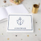 Lägg till en nautisk designad gästbok till stranden eller bröllop i havet. Konstruktionsfunktionen initialer och ankarpunkt i monogrammet.