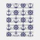 Denna dekorativa utformning har både en mörk marin blå ankare och ett båthjul med grått och vitt rand. Den nautiska illustrationen skapar en modern och unik filt med personligens bakgrund färg.