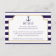 Nautisk marin och vit rand ankare bröllopsdetalj tilläggskort