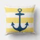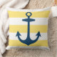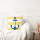 Stilren och chic fyrkantig accentkudde med en strandliknande vit och stark solgul cabana-randig mönster med marinblått båtankare. Den gula bakgrundsfärgen kan anpassas.