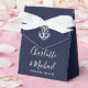 En elegant marinblå nautisk bröllopsgåva i form av en låda med ett fartygsankare, stiliga signerande namn i skrivstil och speciellt datum i modern typografi. Du kan anpassa den med ditt eget tackmeddelande under locket. Ett perfekt sätt att tacka dina gäster! Designad av Thisisnotme©