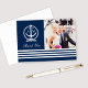 Nautisk marinblå vigselmonogramfoto tack kort