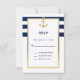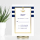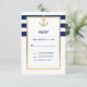 Elegant anpassningsbar OSA nautiskt bröllop-kort. Vita och blå rand med faux guld ram och ankare. Perfekt ett bröllop-tema för destination/nautiska/sommartid. Redigerbara kort - enkelt att lägga till information eller ändra teckensnitt, färg och storlekt.