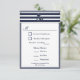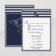 Navigationsblått sväljer OSA inbjudningar 3-menyval - frontsymbolen har ett ankarmenyfliksområde med en kontur som springa längs kortets kant. Mönster och text är marinblå ovanpå en vit bakgrund. Bakgrundsmönstret fortsätter runt kortet och konturen och bakgrunden i färg har nu växlats, där konturen är vit och bakgrunden är marin blå. I mitten är det två som sväljer på flykt och som samarbetar för att bära ett ankare på ett rep. Som standard är papper basinbjudan lagrar, men kan ändras genom att klicka på "välj stil" och sedan använda plockan Pappert i listrutan. Varje inbjudan levereras med ett vitt kuvert. Om du vill ändra teckensnittet, teckensnittet storlekt eller teckensnittet färg klickar du på anpassningsknappen under inbjudan för Nautisk OSA. Observera att du kan behöva anpassa den om vissa formuleringar är för långa och därför passar den bättre. Om du är nöjd med teckensnittsinställningen kan du använda den anpassade funktionen för att ändra demonstrationsinformationen till dina personuppgifter. Om du klickar på den lilla bilderna på framsidan/baksidan av kortet ändras den sidan så att det kan ändras. När du är klar kontrollerar du att informationen du använde är korrekt och att du inte har några stavfel på båda sidor av kortet. Andra produkter som hör ihop med den här.