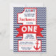 Inbjudan till Nautisk första födelsedag - nautisk första födelsedagsinbjudan - ankare, sjöman, flottan och rött ● © Puggy Prints. Alla höger reserverade.