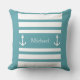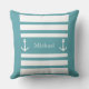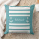 Nautisk blå och vit-randig ankar namn kastkudde. Du kan anpassa genom att skriva text (namn, efternamn, monogram...).