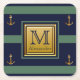 Nautisk Modernt Ankare Blått Guld Grönt Monogram Underlägg Papper Kvadrat