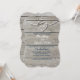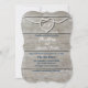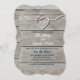 Tunga och vita, ett vitt rep som är bundet i ett hjärta, dekorerar bröllopsinbjudan på en sol blekt träbrädesbakgrund, skapar perfekten för det nautiska temade bröllop.