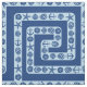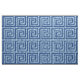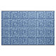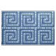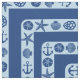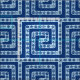 Detta nautiskt, tyg för strandhustema har en enkel modern look med ett geometriskt greknyckelmönster. Dess söt, dekorativ stylized design inkluderar silhouettes av snäckor, sjöstjärna, ankrar och sanddollar, alla i ljusa - slösa på mörk - blått. Designen har en elegant yet minimalist modkänselförnimmelse.