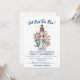 Denna design visar en hög randig fyr som lyser över en rolig samling sjö-tema föremål. Längst ner flyter en liten båt på mjuka vattenvågor. Bakom den syns ett trä-ratt, ett tungt järnankare, en flytande räddningsring och en gammal kursfinder alla sammanbundna med tjockt rep. Texten är i en mörkblå färg och är snyggt upplagd på den enfaldiga vita bakgrunden så att allt är lätt att läsa. Det är en mycket söt och enkel look för en pojkes fest nära vattnet.
