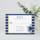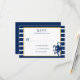 Den marinblå och vita rand-bakgrunden med guld skisserade ram och en söt marin blå bläckfisk gör denna nautisk-temade OSA kort till ett slags. Matchande bröllopsinbjudan finns tillgänglig. Om du vill ha den här designen på en matchande produkt eller vill lägga till menyalternativ kontaktar du mig genom min butik. Jag är lycklig för att hjälpa dig ändå.