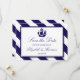 De här sparar datumkorten är perfekt för alla par som planerar ett romantiskt giftermål vid havet. Utformningen har en vit marin frakt med blått motiv på en marin och vit strimlad bakgrund. Den enkla utformningen kan vara personligen till kostym för ditt speciella evenemang och kommer att vara perfektens meddelande för alla sjöstrandar som temat party, inklusive: möhippor, förlovningar, möhippor, födelsedagsfester och mycket mer.