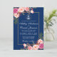 Nautisk Rosa Blommigt Blue Guld Bröllop Inbjudningar