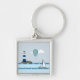 Nyckelkedja i metall som kan anpassas med en nautiska scen av en segelbåt som seglar i ett vågigt hav med en luftballong över flytande passerade en fyr.