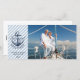 Det här nautiska Julhälsningar fotokortet koordinerar tematiskt med ditt kryssnings-, havs-, segelflyg-, strand- eller tropiska semesterfoto som du vill med dina vänner och din familj den här julhelgen, eller så skickar du önskemål från din båt eller bara kärlek till SEA! Detta icke-traditionella helgdag-kort kommer säkerligen att framträda bland semesterhälsningarna med ett nautiskt utseende och en lek på ord "Säsongens hälsningar" med ord "Seas AND Hälsning" i modern typografi kring ett marint blåankare mot en ljusblå diagonal, rakryddad bakgrund, som på ett vackert sätt visar upp ditt foto. (PHOTO TIP: För snabbaste/bästa resultat väljer du ett foto med subjekt eller viktigt inslag i mitten och/eller förmontera bilden i skörd i en liknande form som den som visas innan du överför den och fyller i det bildutrymme som visas perfekt.) Kontakta designern om du vill ha designen på en annan produkt.