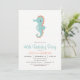 Nautisk sjöhäst födelsedagsfest inbjudan. Inbjudan har korall och akvarier färg.