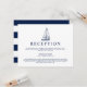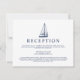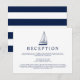 Nautiska mottagningsinbjudningskort med vintage segelbåt och en marin- och vitrandig bakgrund på baksidan.