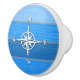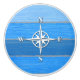 Nautisk tematisk utformning med kompass dekoration på stripe-blått och grått-träbakgrund. Observera att detta inte är gjort av trä, det är ett trägrafiskt tryck.