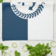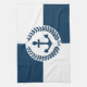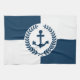 Nautisk tematisk utformning med ankarutandning och lagerkrans dekoration över blå och vit geometrisk bakgrund