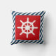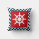 Nautisk tematisk utformning med segelhjulets dekoration i kvadrat på blå och vit strimlad bakgrund