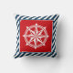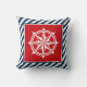 Nautisk tematisk design med kompass dekoration i kvadrat på blå och vit strimlad bakgrund