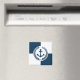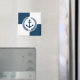 Nautisk tematisk utformning med ankarutandning och lagerkrans dekoration över blå och vit geometrisk bakgrund