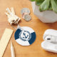 Nautisk tematisk utformning med ankarutandning och lagerkrans dekoration över blå och vit geometrisk bakgrund