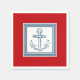 Nautisk tematisk design med ankarpunkt i raderade kvadrater på röd bakgrund med dekoration