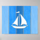 Nautisk tematisk utformning med segelbåtens dekoration på tvärgående blå bakgrund och grått-träbakgrund. Observera att detta inte är gjort av trä, det är ett trägrafiskt tryck.