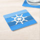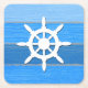 Nautisk tematisk utformning med segelhjulets dekoration på stripe-blått och grått-träbakgrund. Observera att detta inte är gjort av trä, det är ett trägrafiskt tryck.