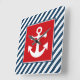 Den nautiska themed designen med ankrar dekoration kvadrerar in på blått och vit görad randig bakgrund