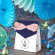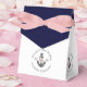 Menu Nautisk-Thned Blommigt Anchor Rosa White and Navy Blue Background Wedbox förmånslåda