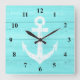 Nautisk väggklocka | Ankarpaneler och träpaneler. Turkos blå och vit design med träskivor och vädermarint ankare för frakt. Tanken på maritima gåvor. Matrisrumsdekor/dekoration för hytt. Stora kvadratiska eller små runda storleka.