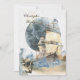 Den här inbjudan till sjöfärgsbröllop har en vacker frakt med segel och ankare framför fullt. I bakgrunden finns det vågar och sten mot en benvit faux texturerad bakgrund. Baksidan har texten från inbjudan som är utformad och dekorerad med blommornas söt. -