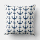 En nautisk vit kastkudde med ett marinblått ankar-upprepningsmönster för en fräsch, luftig tolkning av maritim stil. Täta marinblå ankare i varierande storlek framträder mot den rena vita bakgrunden för en skarp, grafisk kustnära look. En ljus accent för strandhus, sjöhus eller något utrymme med nautisk charm.