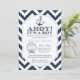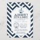 Ahoy! Det är en pojke. Gullig nautisk pojkebaby showerinbjudan med det stora sparremönster och seglinginslag. Ankra och det nautiska repet. Marinen som kopplas ihop med baby blue, gör ett påstående med denna design!!