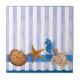 Görar randig den original- vattenfärgen målade designen av Sandra kuling som presenterar stjärnafisken, havshästen, sköldpaddan och snäckor på en bakgrund av vertikala genomskinliga blått. Underbar design för sommaren, strandhemmen, bungalower eller för någon som älskar stranden, hav eller fisken.
