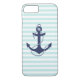 Nautiska marinblåa aqua- & vitrandar ankrar Case-Mate iPhone skal