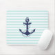 Nautiska marinblåa aqua- & vitrandar ankrar musmatta